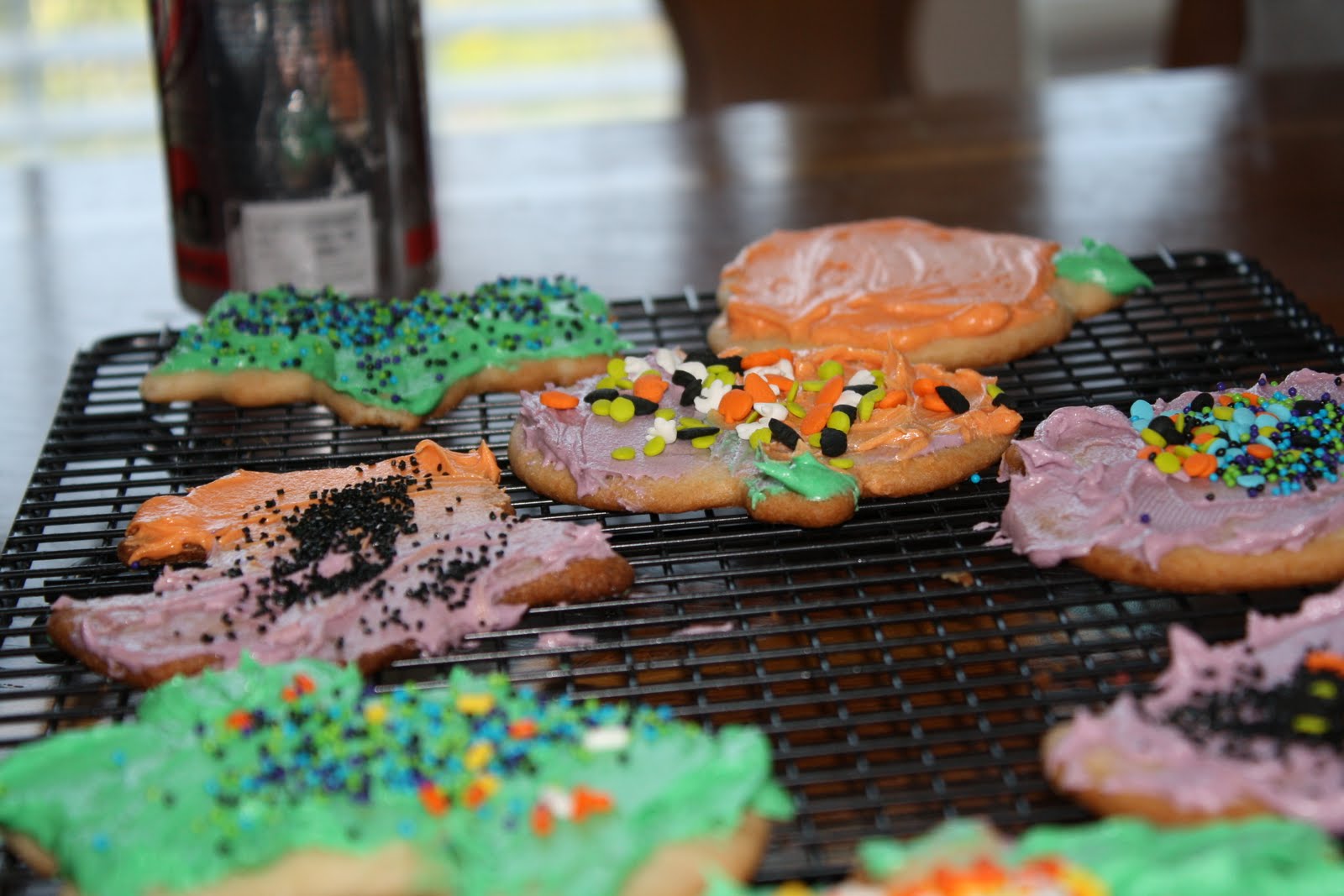Sugar cookies arent just for Christmas anymore. We like to start early and make them for Halloween too. This year we did bats, cats and pumpkins. They sure did taste good.
